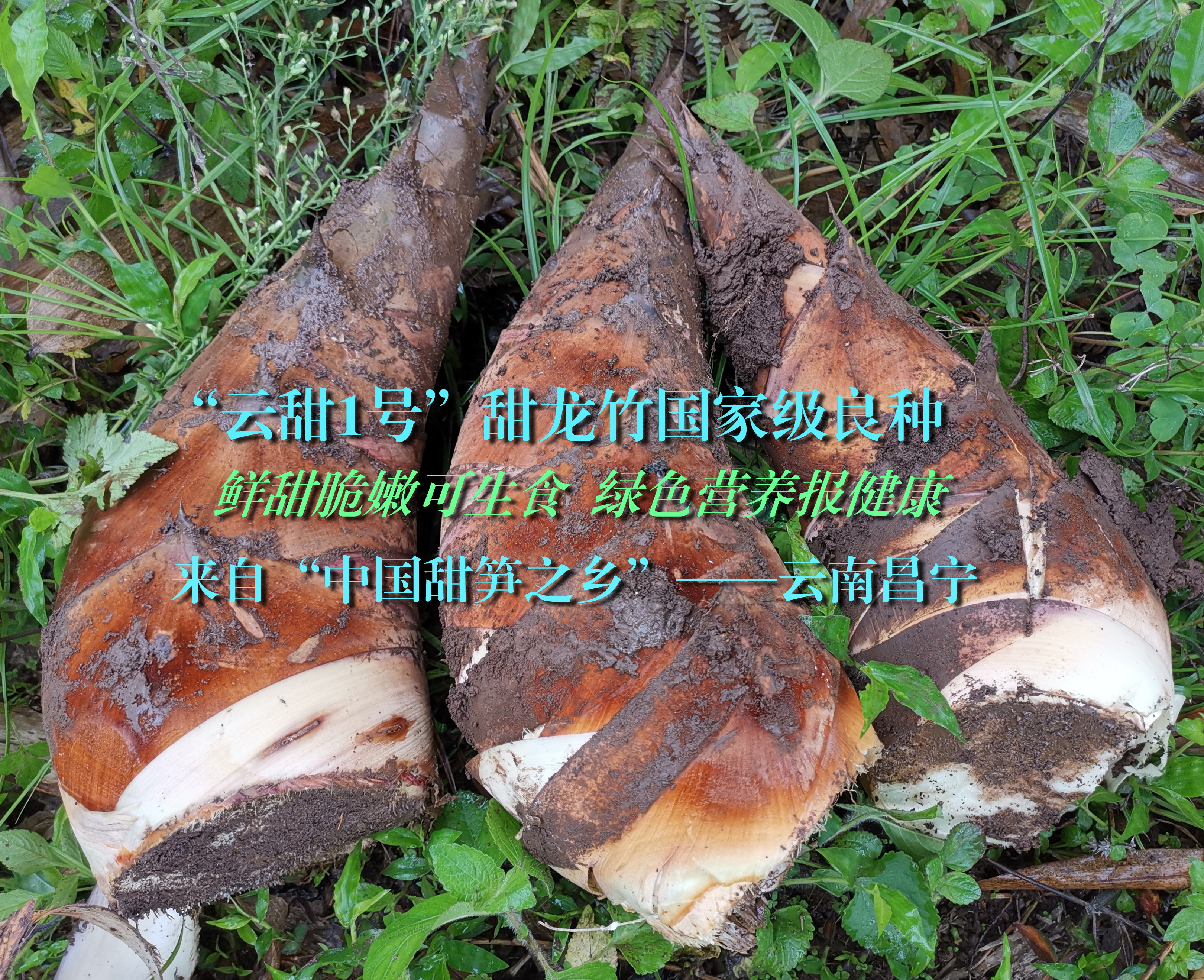 甜龙竹(Dendrocalamus brandisii)是世界上鲜笋品质最好的竹子,云南特产优质笋用竹种,其鲜笋笋体肥壮,具有高蛋白、低脂肪特点,富含膳食纤维和丰富的营养元素,鲜甜脆嫩可生食、绿色营养保健康,受到市场广泛追捧!